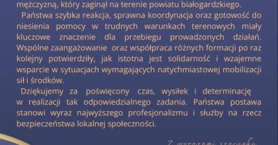 • Podziękowania za wsparcie przy poszukiwaniach zaginionego mężczyzny